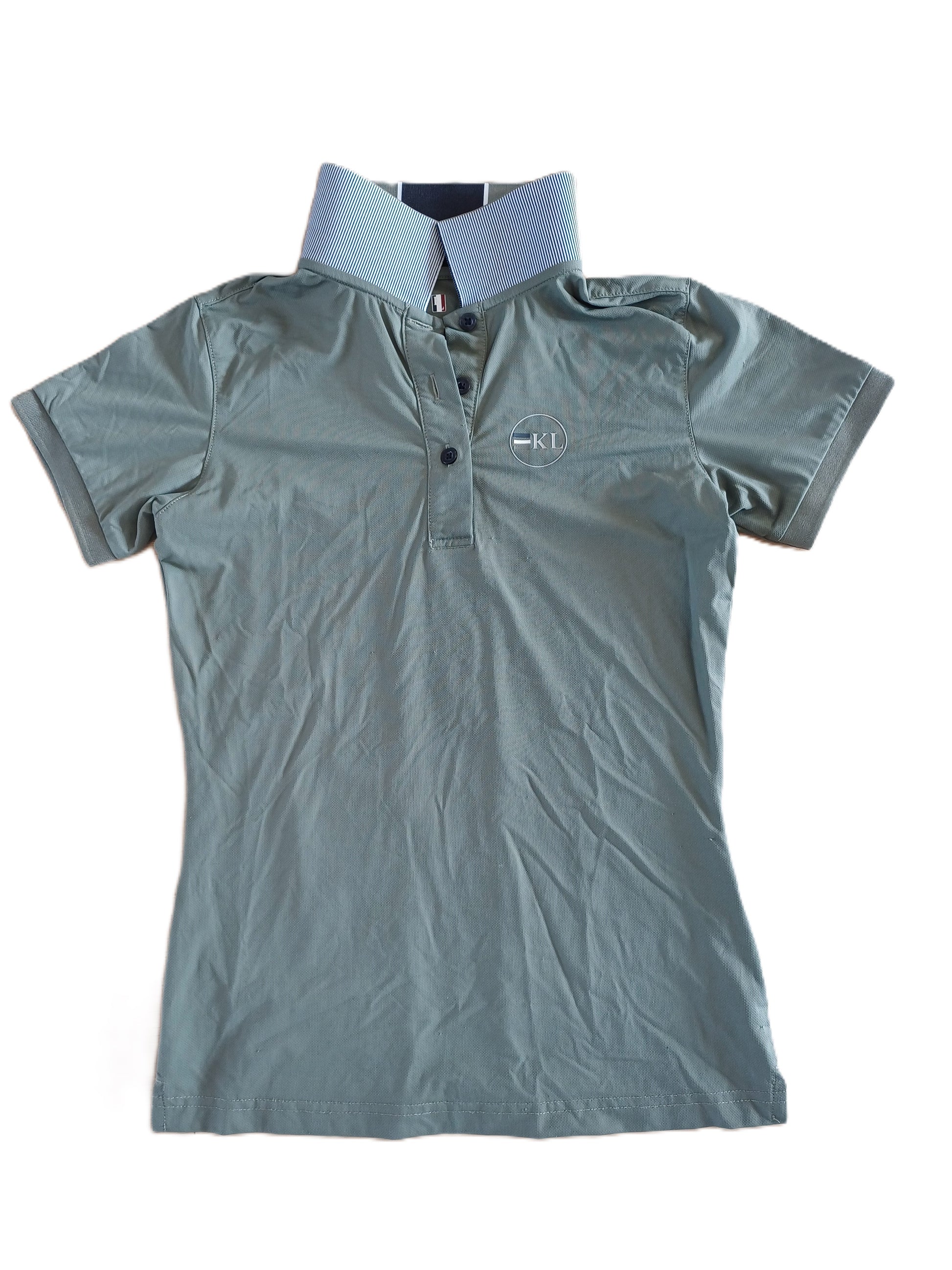 Polo concours Kingsland – Kaki avec bande marine au dos, Taille S (Très bon état)